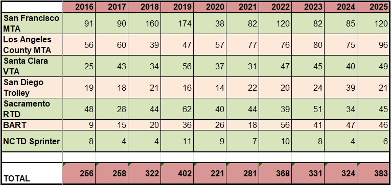 CPUC General Order 164-F requires California rail transit agencies to report incidents that meet specific thresholds, such as if the incident resulted in a fatality or certain level of injuries, property damage exceeding certain amount, etc. Depending on the circumstances of a reportable incident, the CPUC will either directly investigate or alternatively review and approve incident investigations conducted by the rail transit agencies.