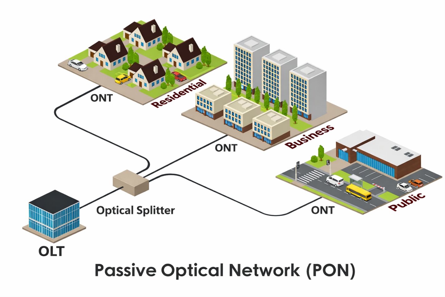 Passive Optical Network (PON) technology is efficient, scalable, and cost-effective for meeting current and future demand for broadband connectivity. The "passive" designation means that the network uses unpowered (passive) optical splitters to distribute light signals from a single fiber strand to multiple endpoints. This engineering choice eliminates the need for electrical equipment between the central network hub and customer locations, reducing infrastructure costs and potential points of failure.